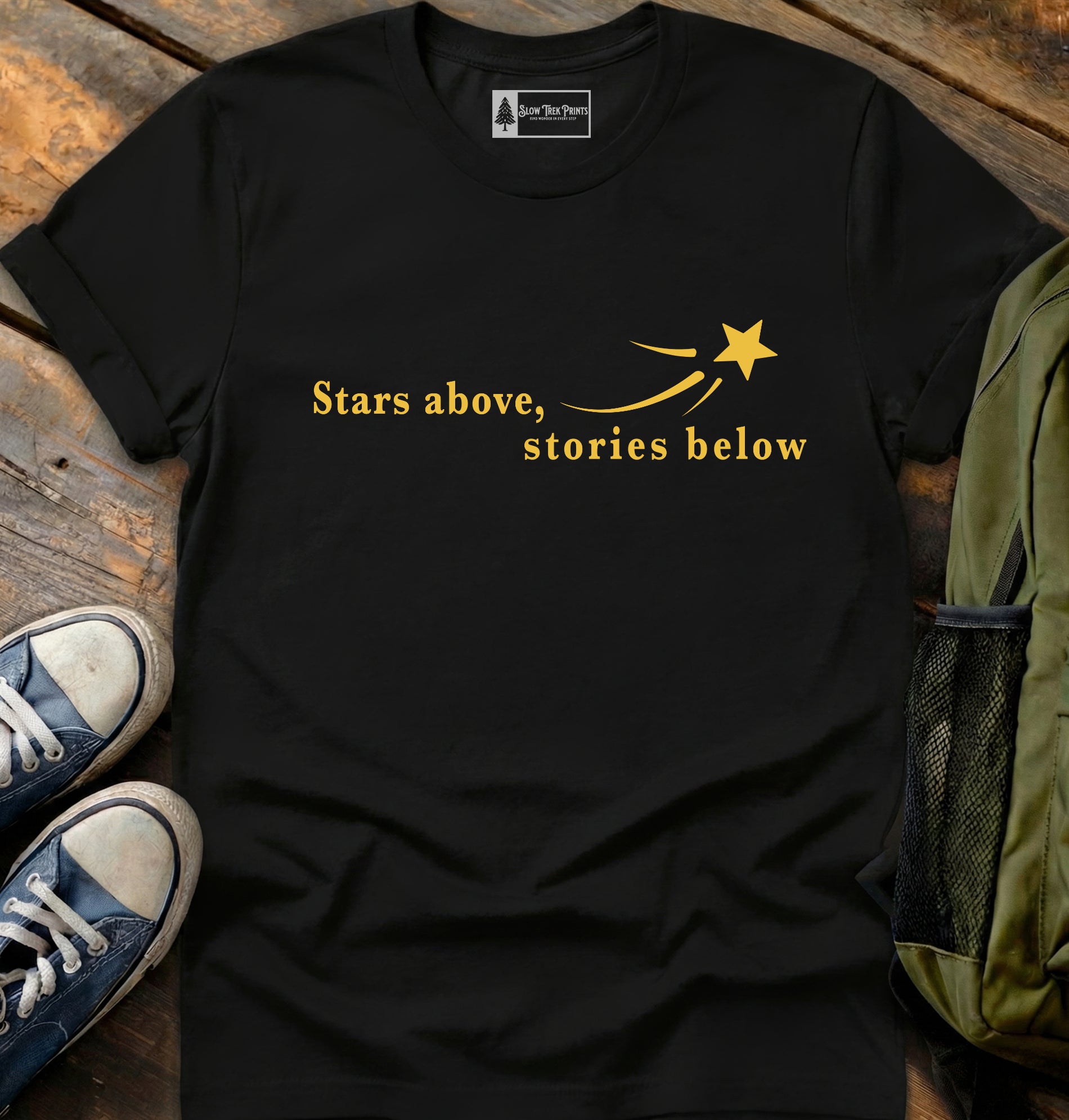 At Slow Trek Prints, we skip the hype and let the work speak. No gimmicks! Just honest, well-made apparel designed to carry you through the long walk, the quiet moments, and every story in between.