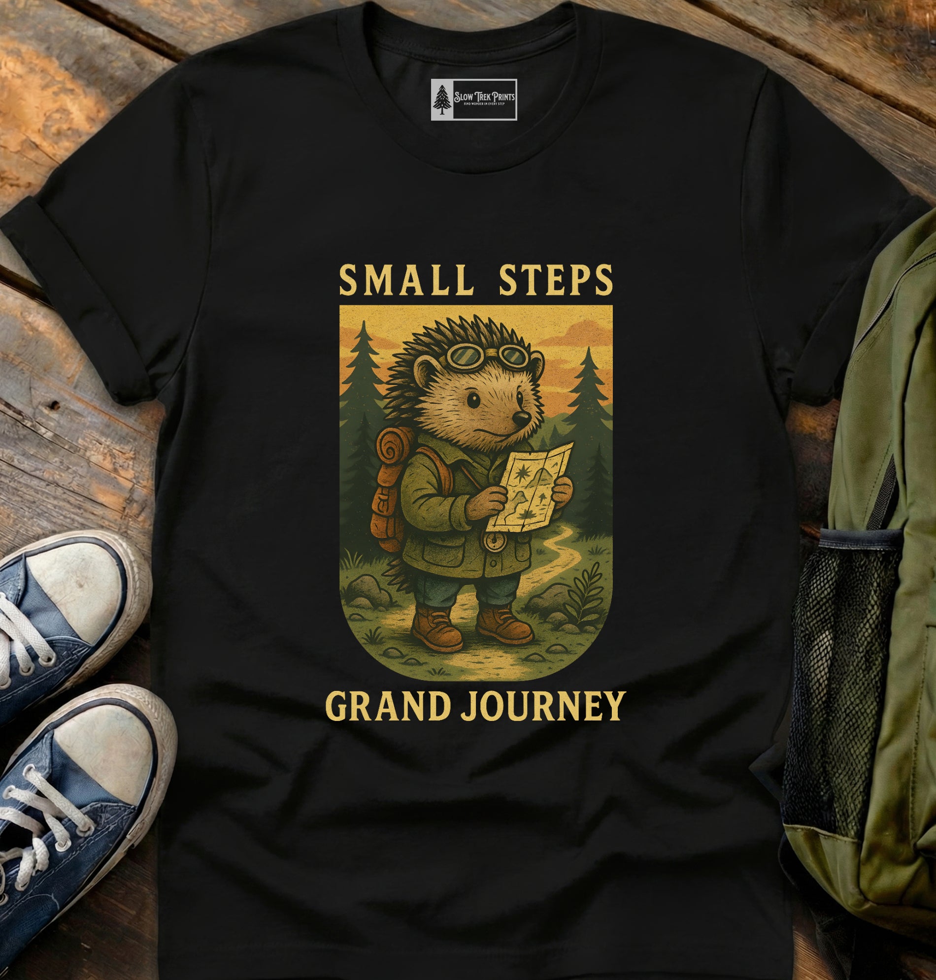 At Slow Trek Prints, we skip the hype and let the work speak. No gimmicks! Just honest, well-made apparel designed to carry you through the long walk, the quiet moments, and every story in between.