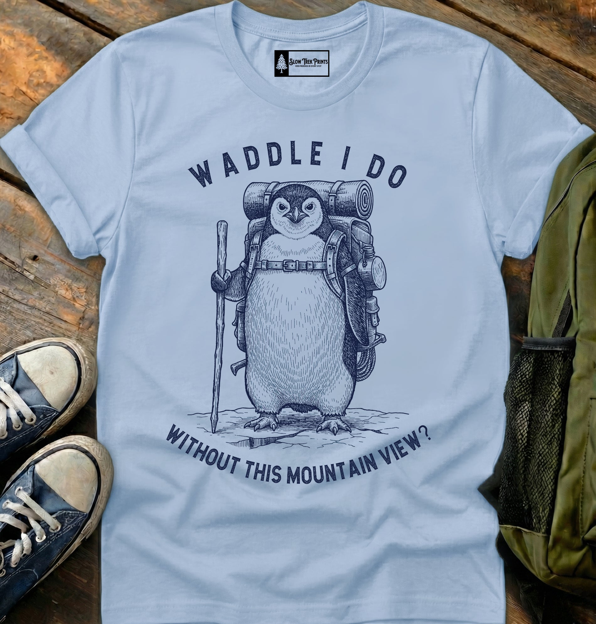 At Slow Trek Prints, we skip the hype and let the work speak. No gimmicks! Just honest, well-made apparel designed to carry you through the long walk, the quiet moments, and every story in between.